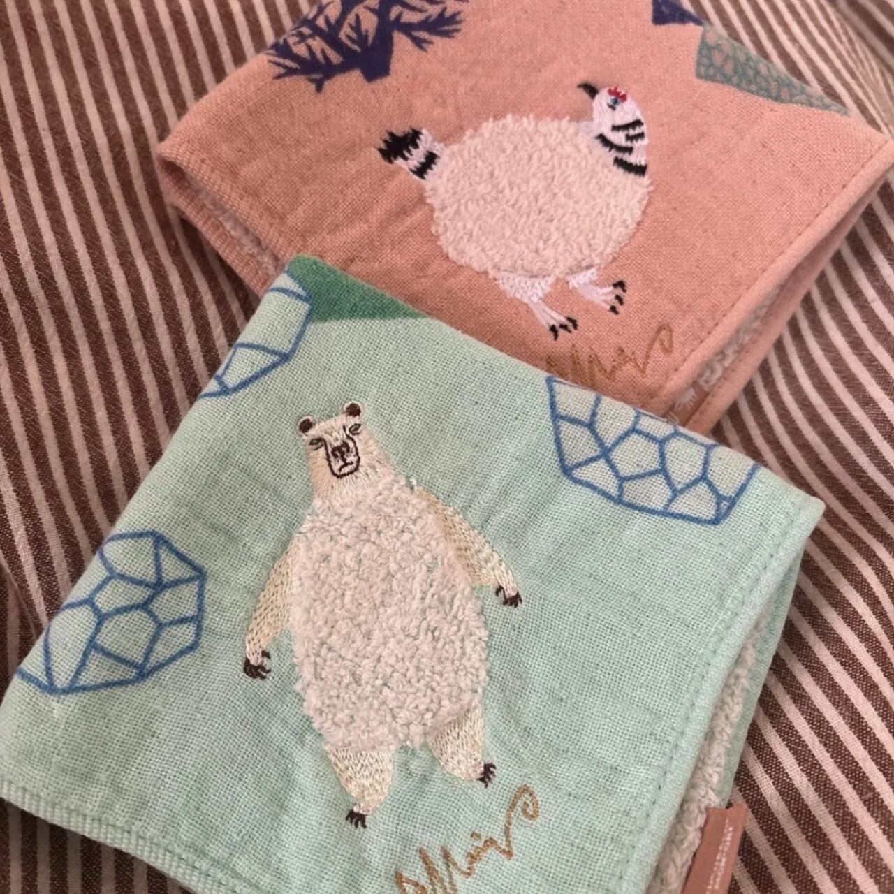 ガーゼ×モコモコパイルと個性的な刺繍がポイントです。