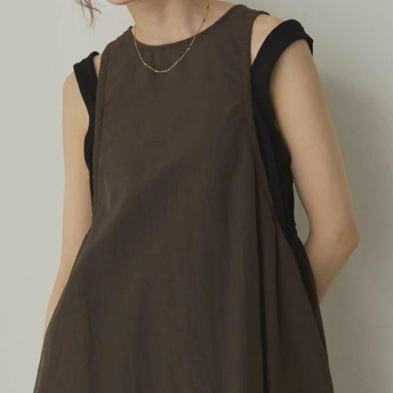 リブタンクトップをレイヤードしているような