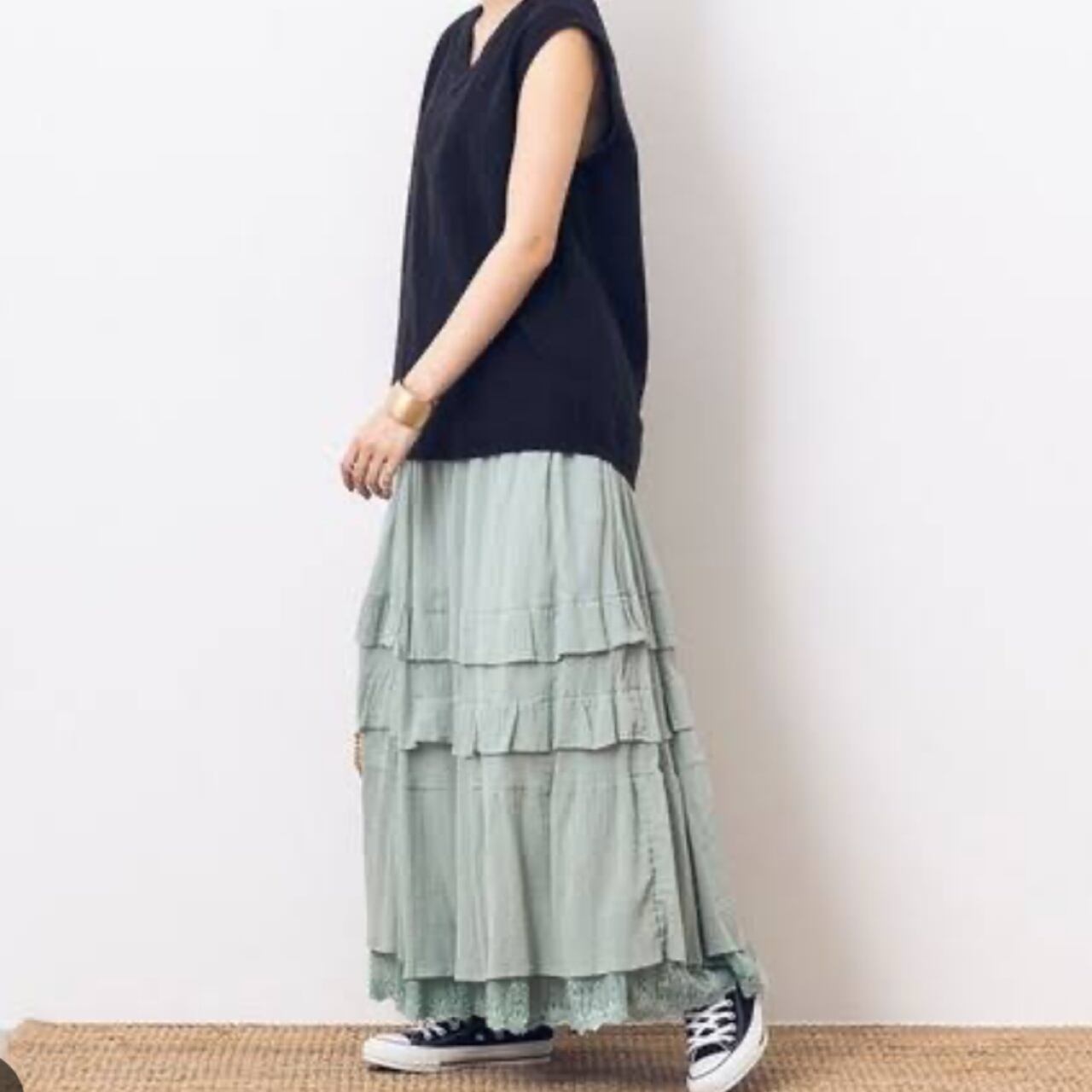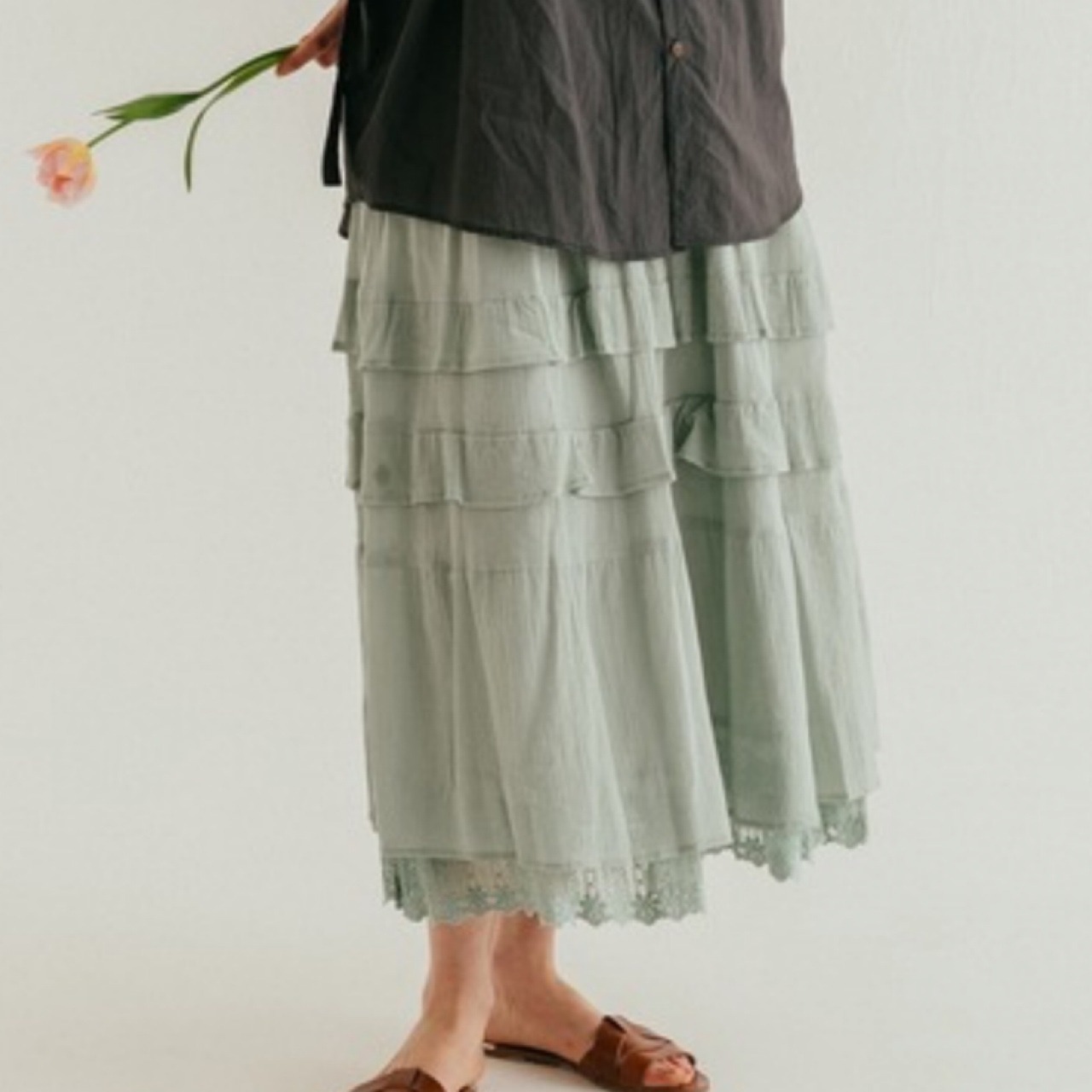 カーキトのティアードスカート。