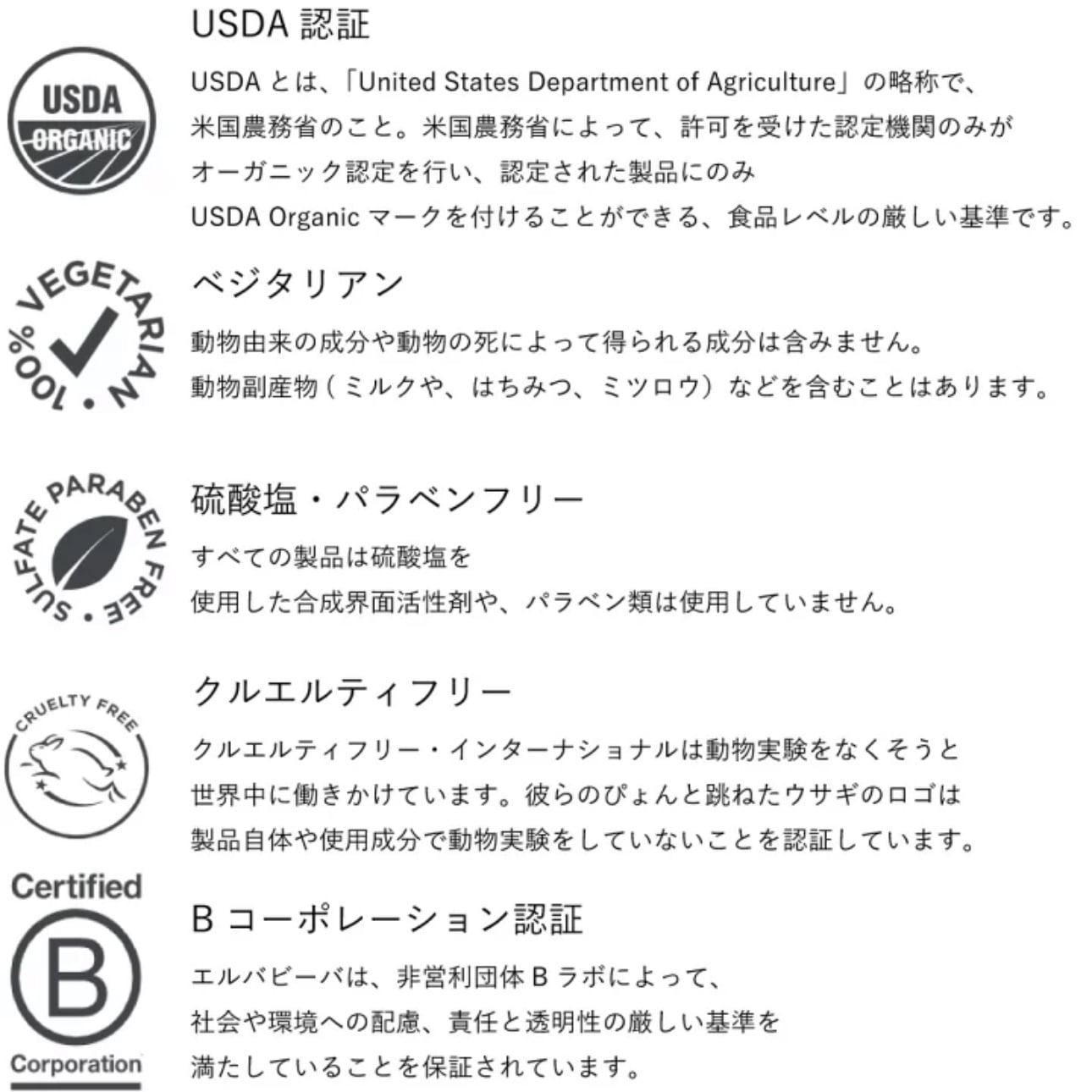 オーガニックコスメ、ナチュラルコスメの認証は数多くありますが、より厳しい食品基準であるUSDA認証を多くの商品で取得しています。